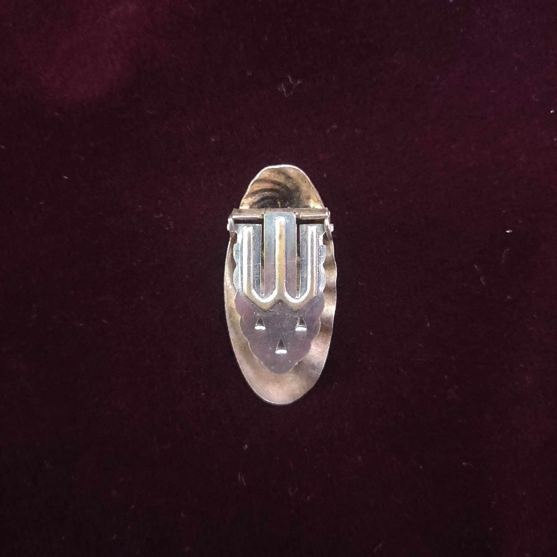 This beautiful silver-tone dress clip is likely 1930s, possibly a little earlier. I love the way it swirls, reminding me of a gorgeous galaxy!