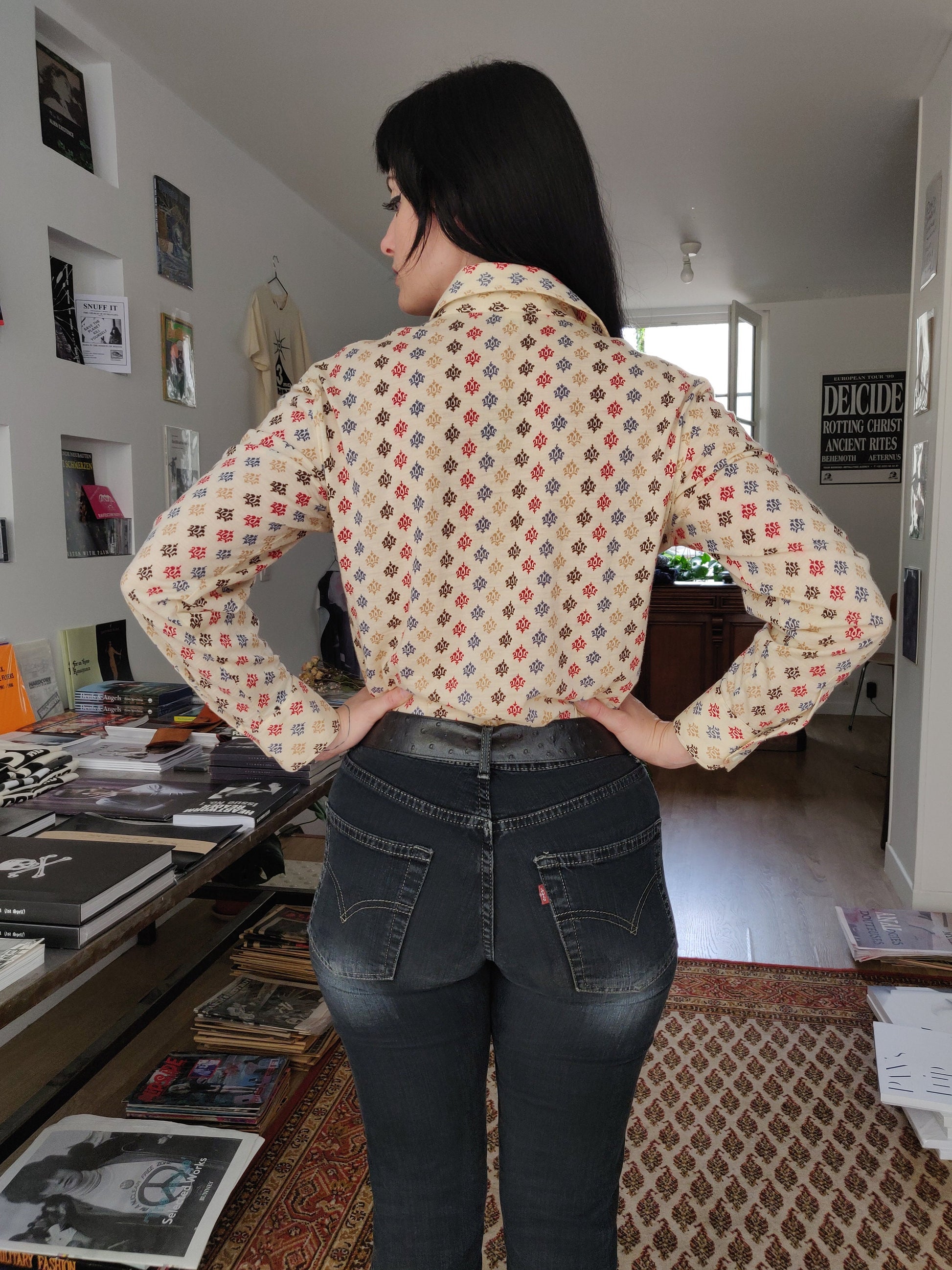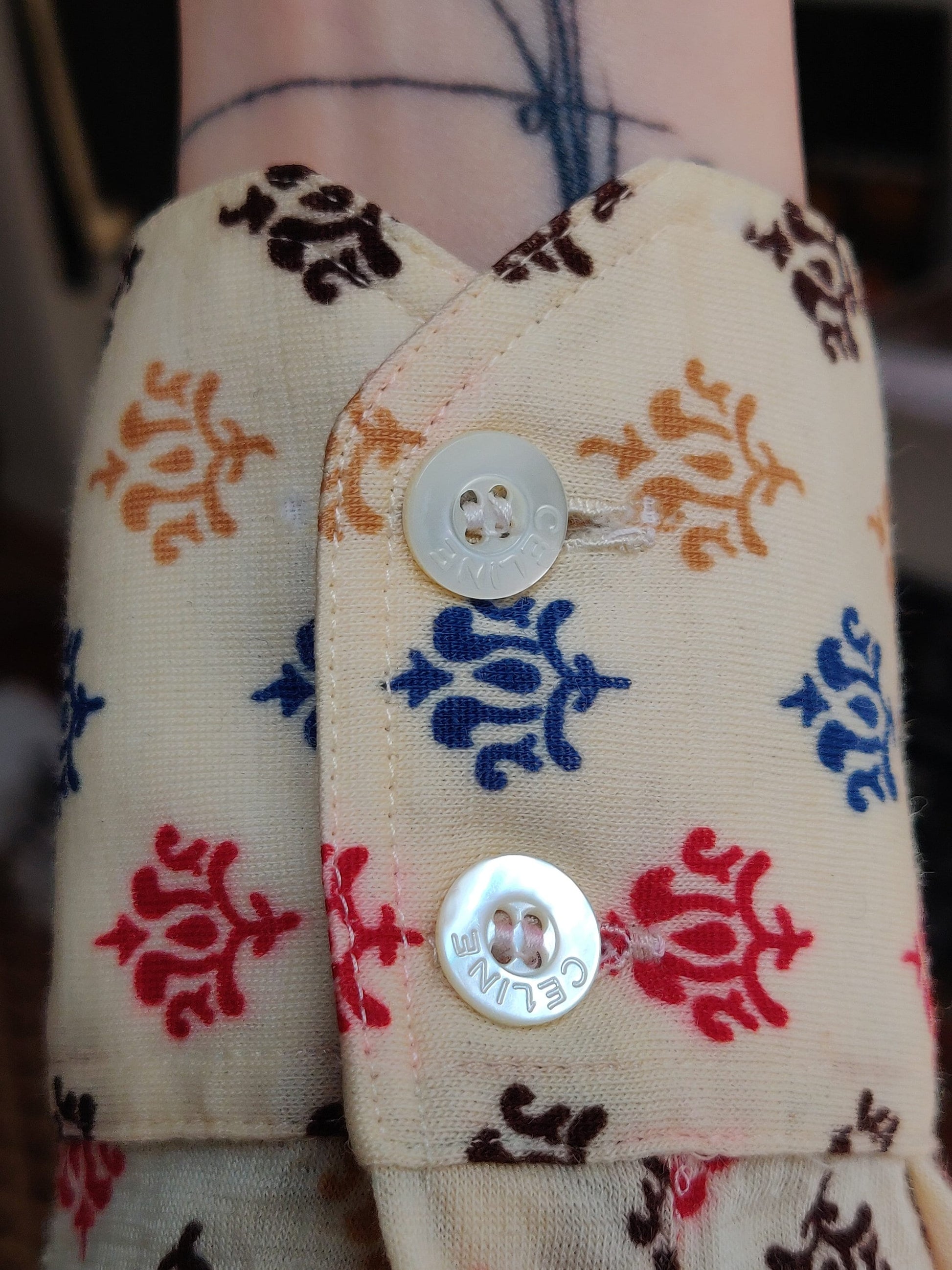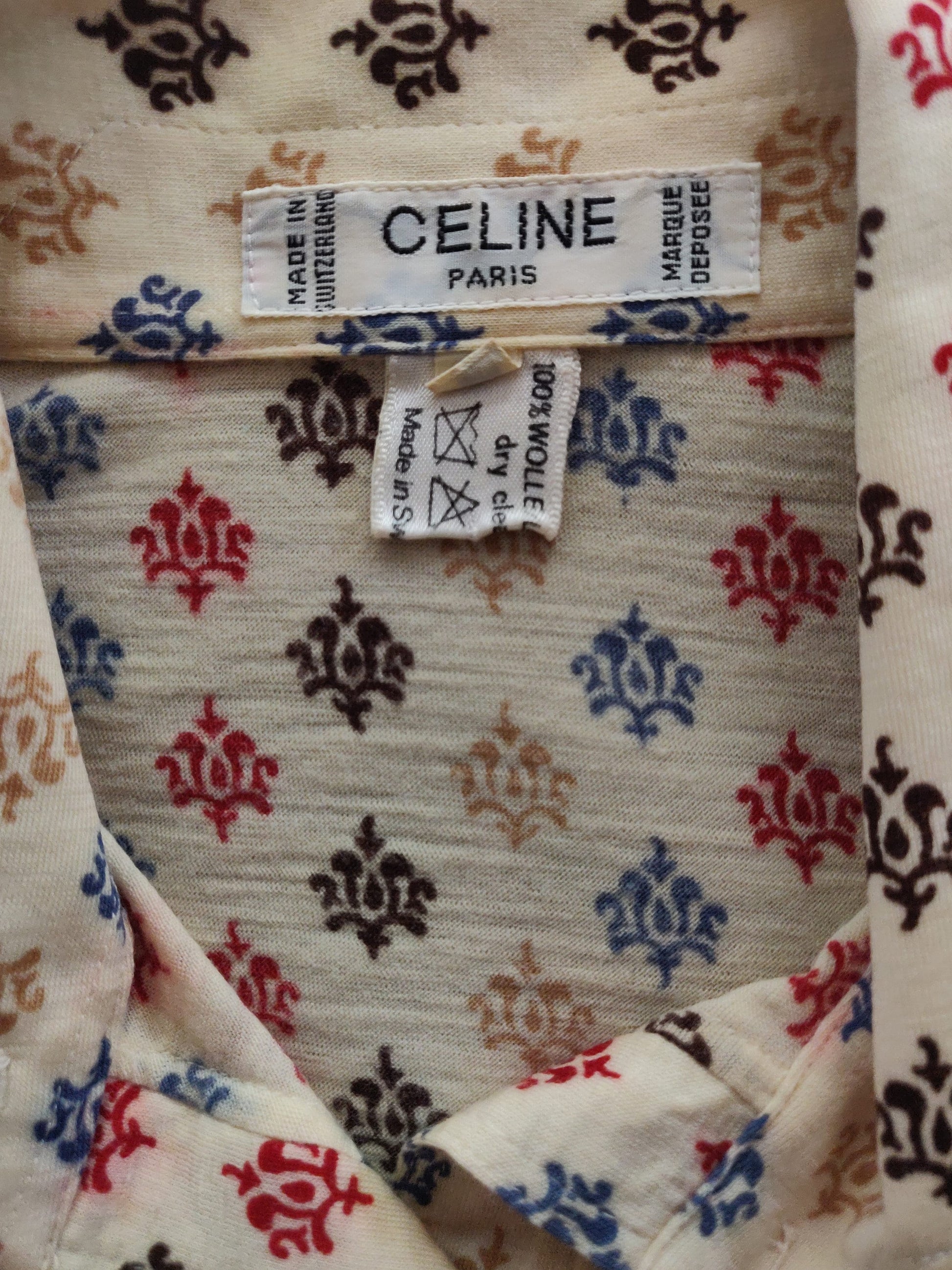 1970s Céline Paris Motif Button Up Shirt Blouse - Lightweight Wool - French Designer Vintage