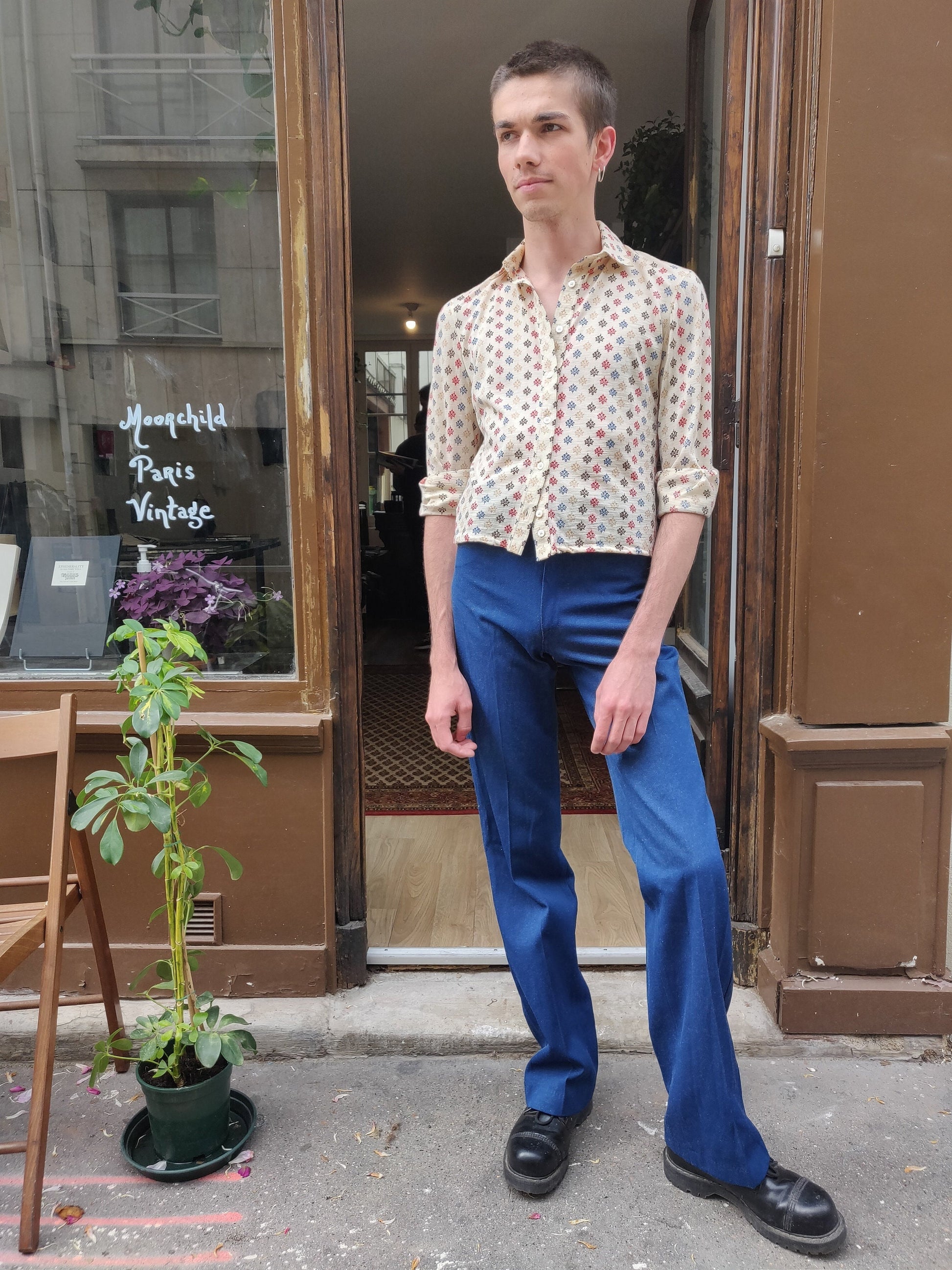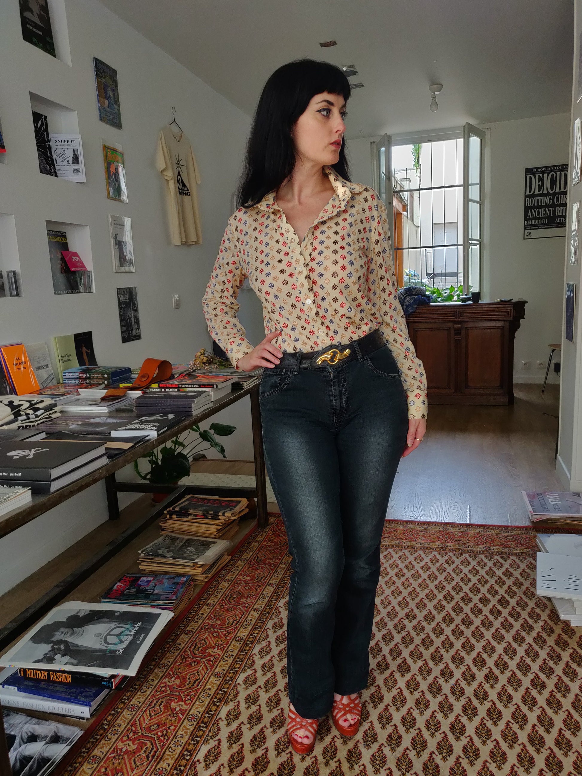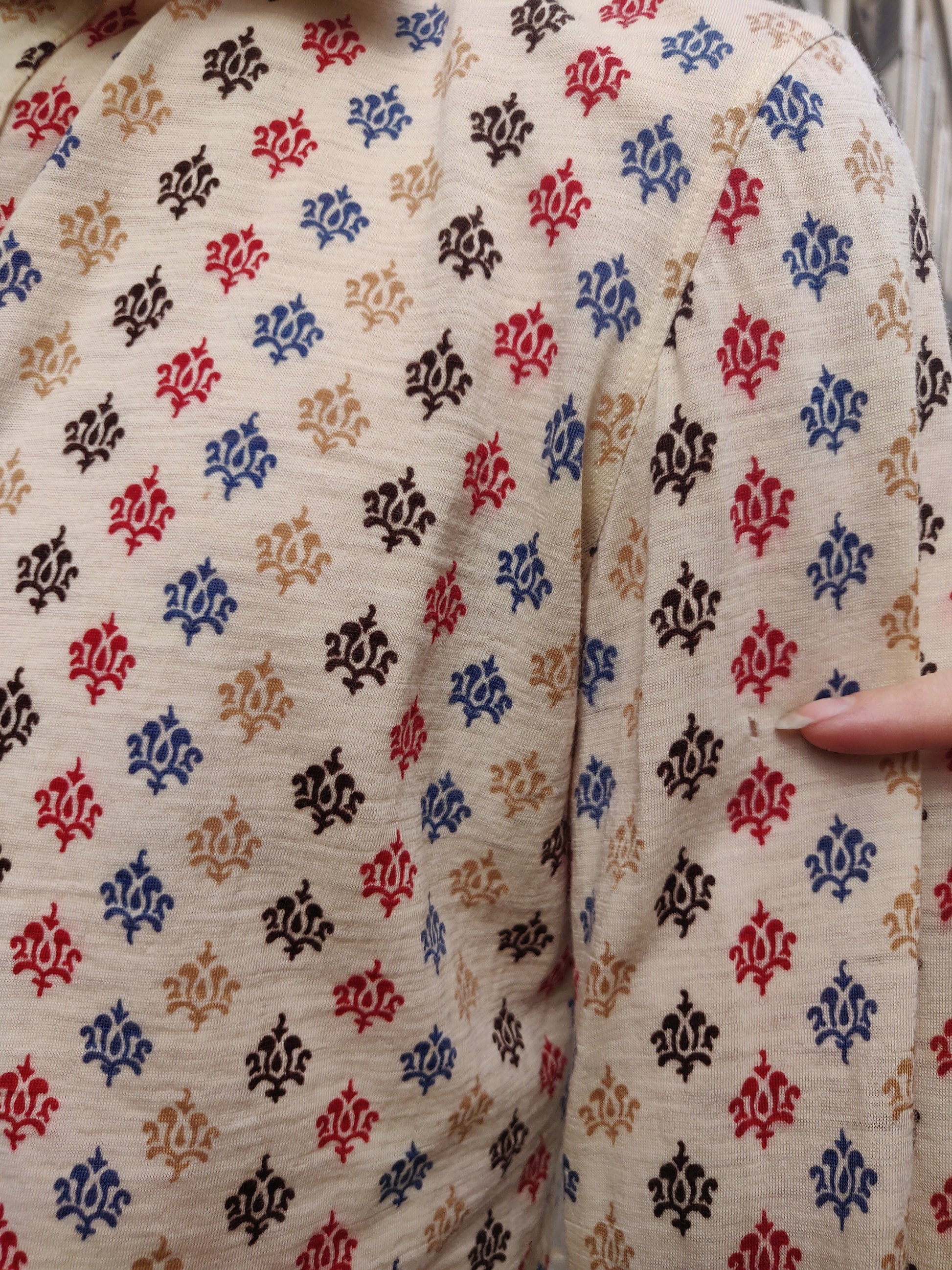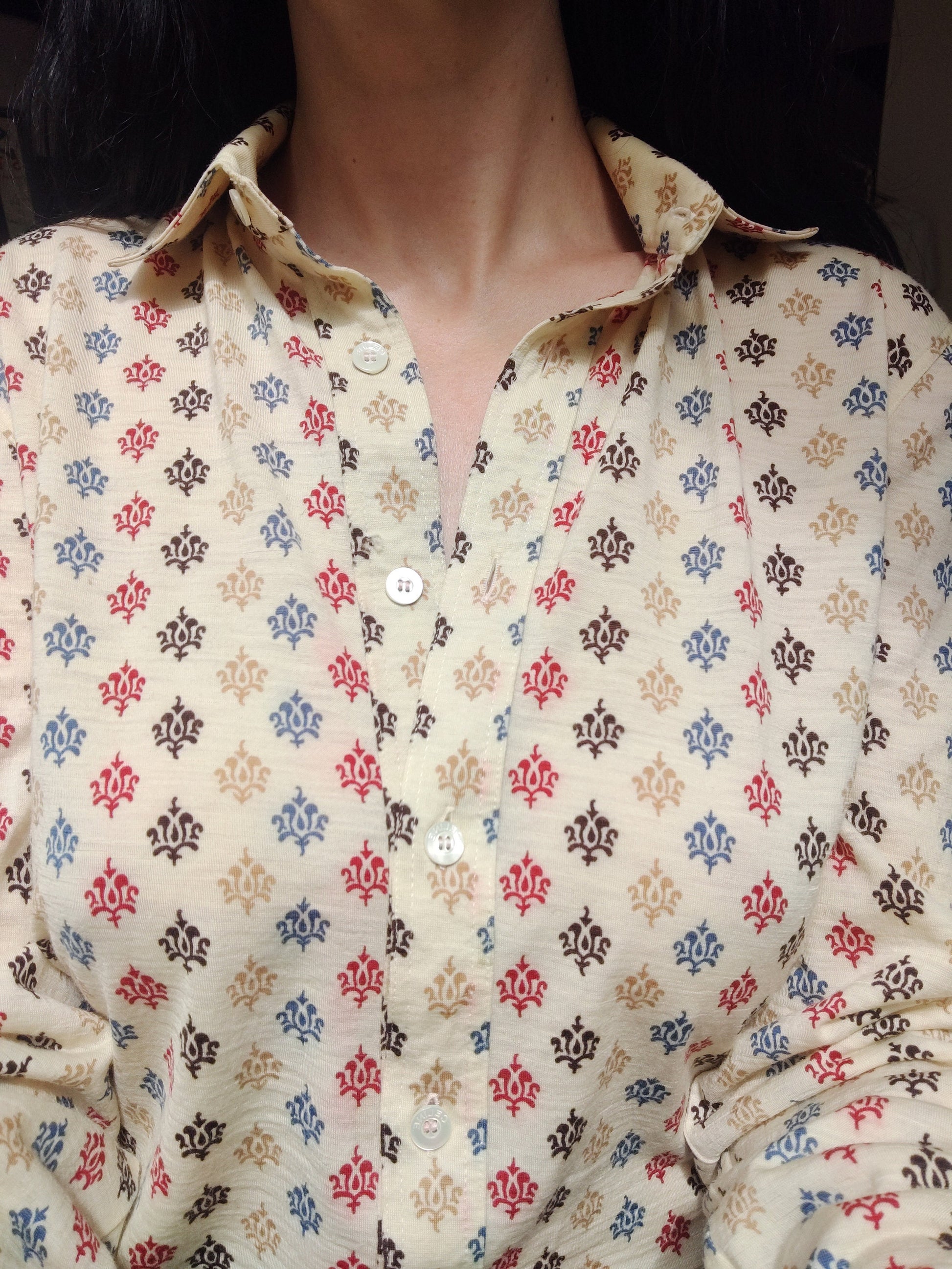1970s Céline Paris Motif Button Up Shirt Blouse - Lightweight Wool - French Designer Vintage