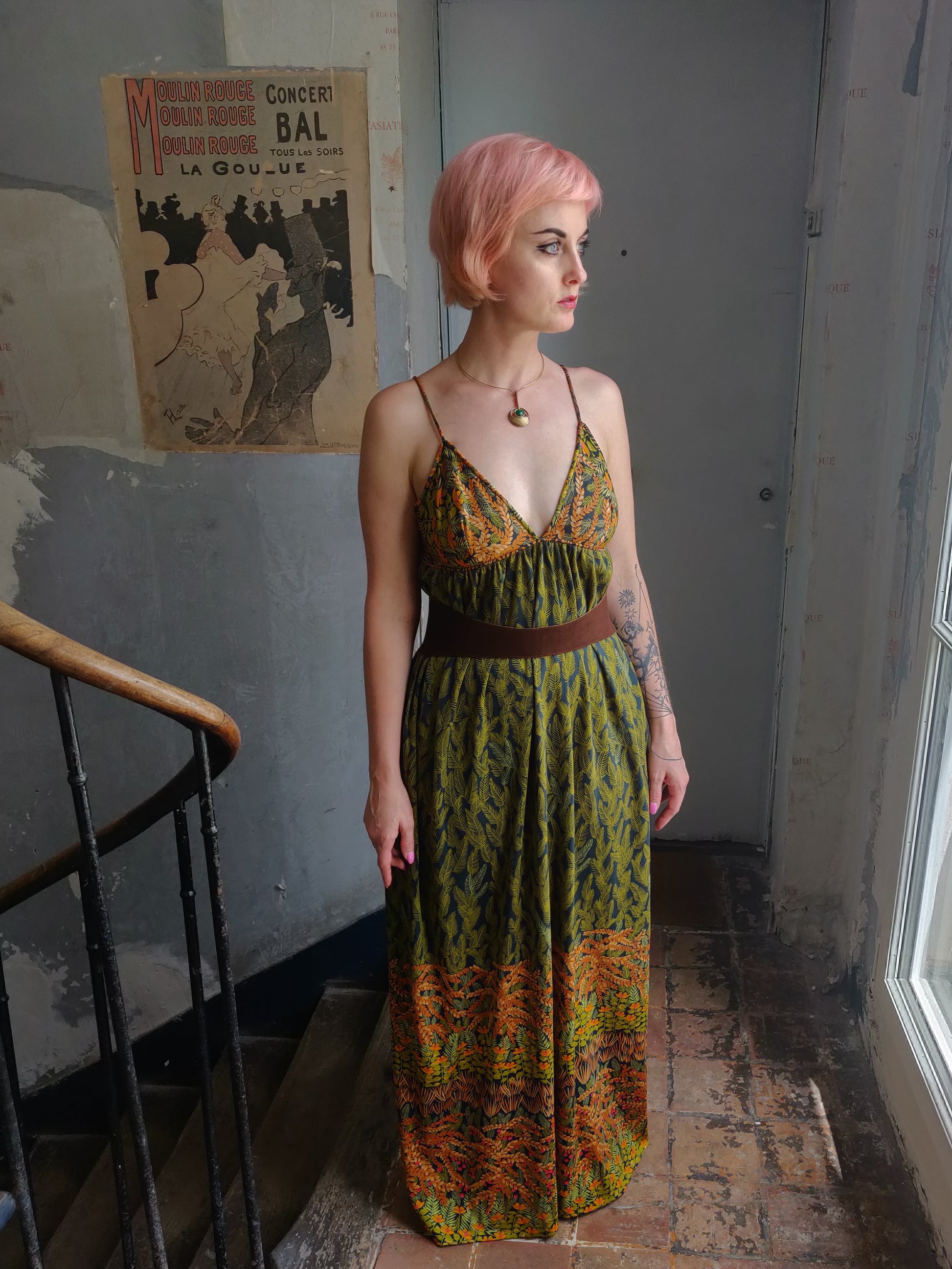 This late 70s summer dress by John Bates' label Jean Varon is such a fun, flowy piece to wear! I love the colors and the tropical-esque pattern.