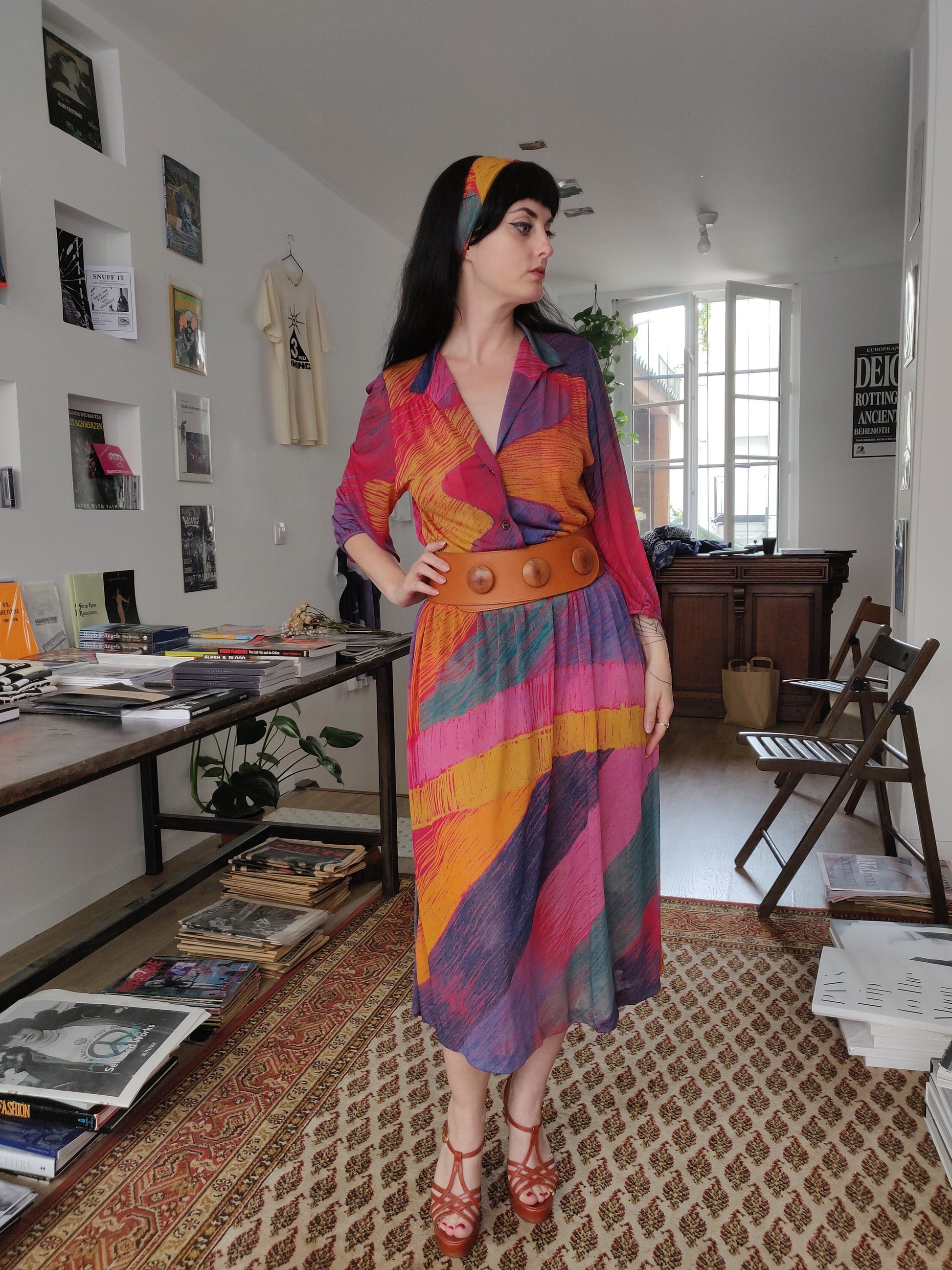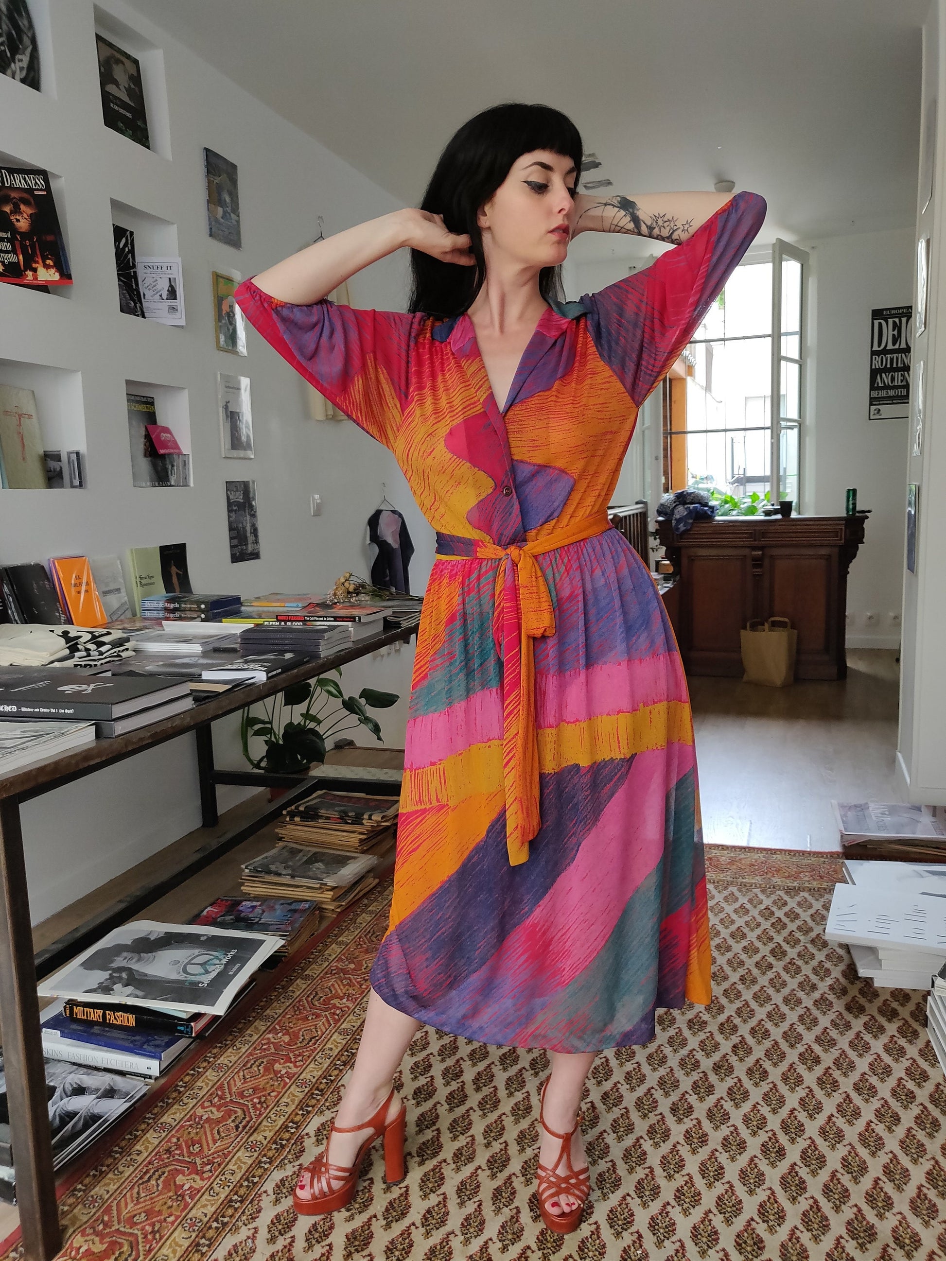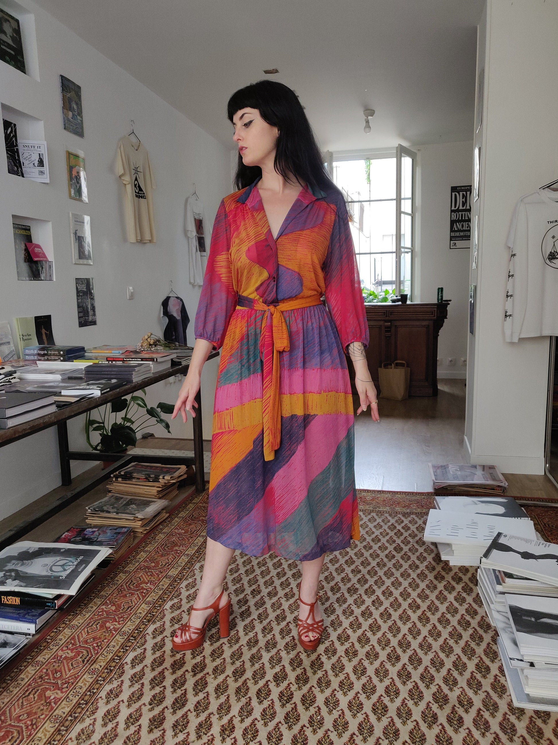 1970s Ted Lapidus Rainbow Dress - French Designer Piece