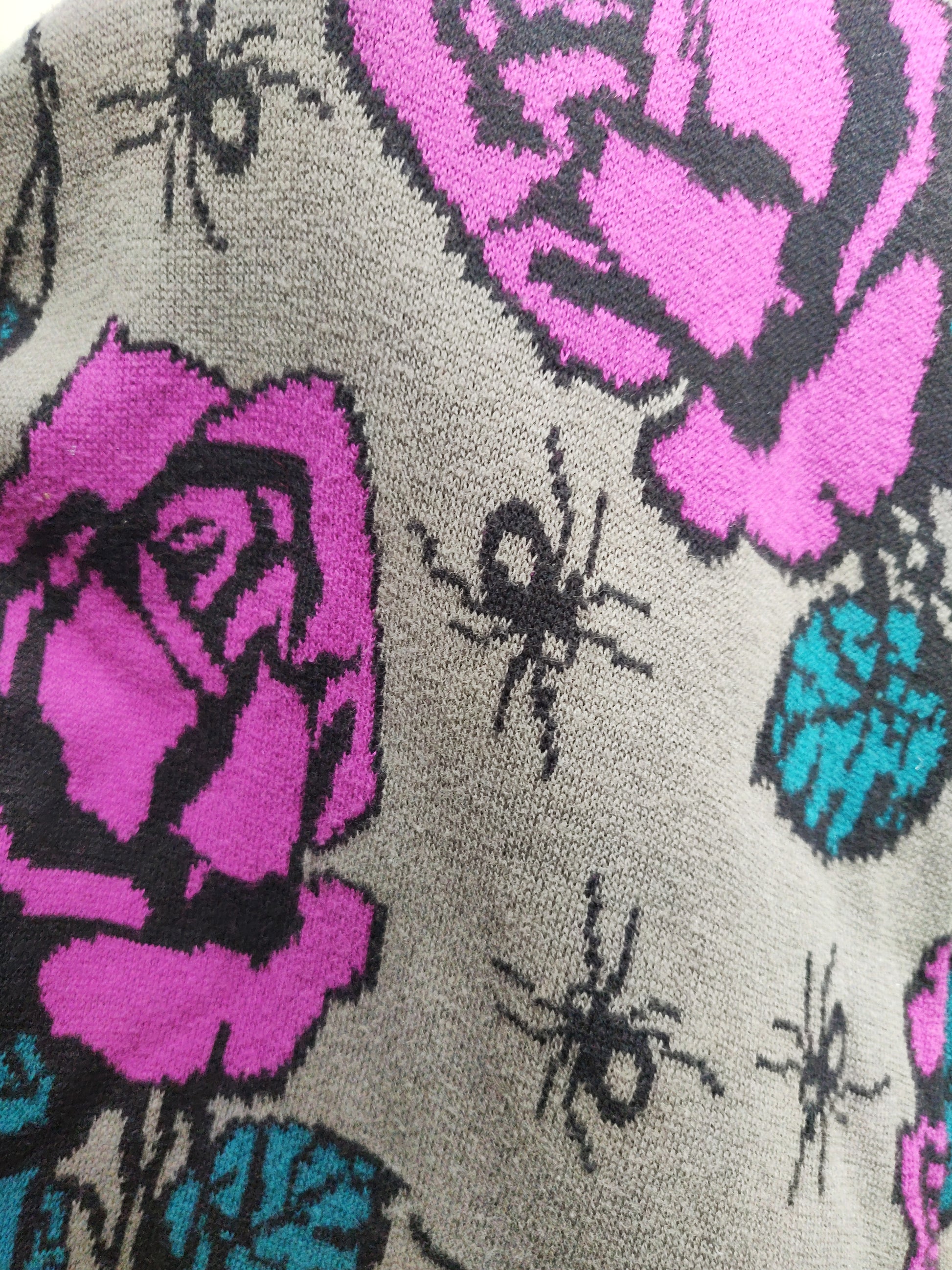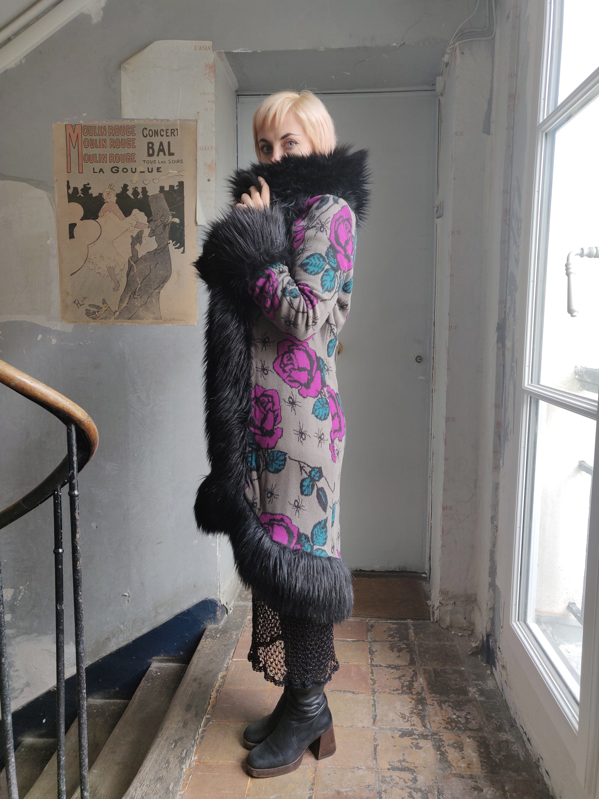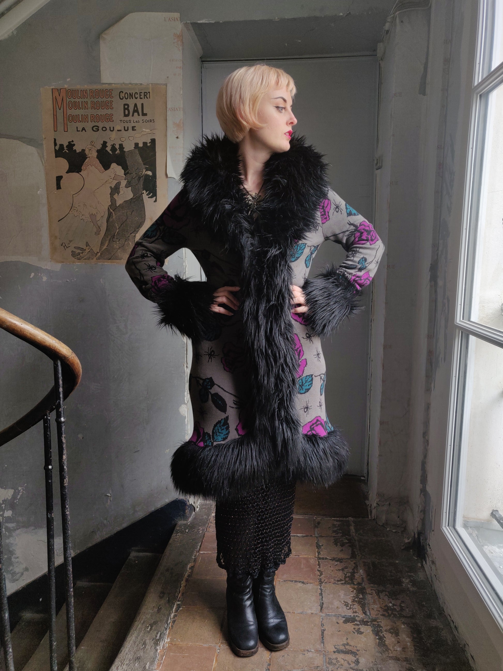 How absolutely fabulous is this Betsey Johnson knit duster coat!?! With its magnificent motif of spiders and roses and the deep black faux fur trim, I am drooling over this piece. If it was my size I'd definitely be hanging on to it. But she is not destined for me. So who will be the lucky one? 👀