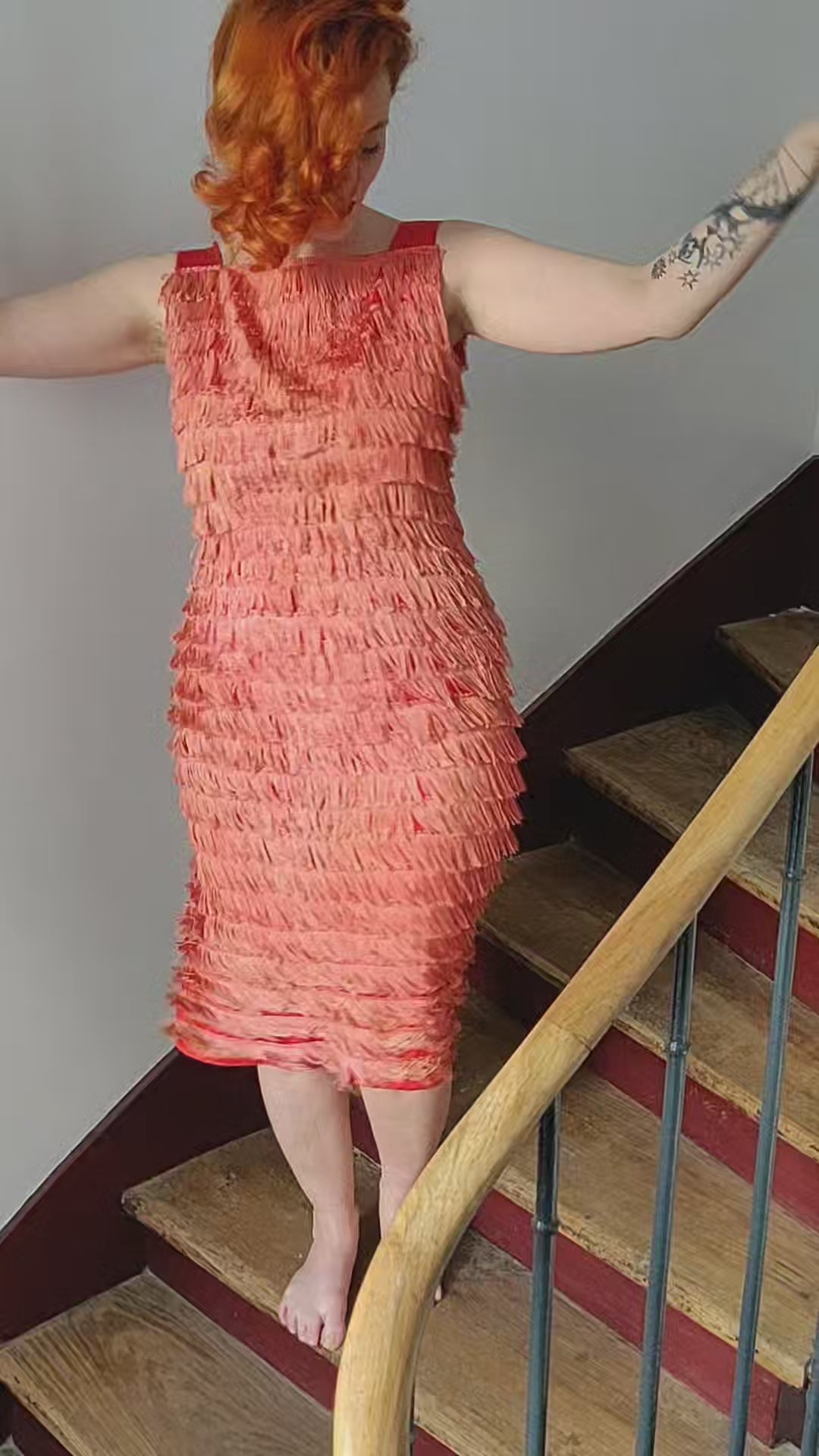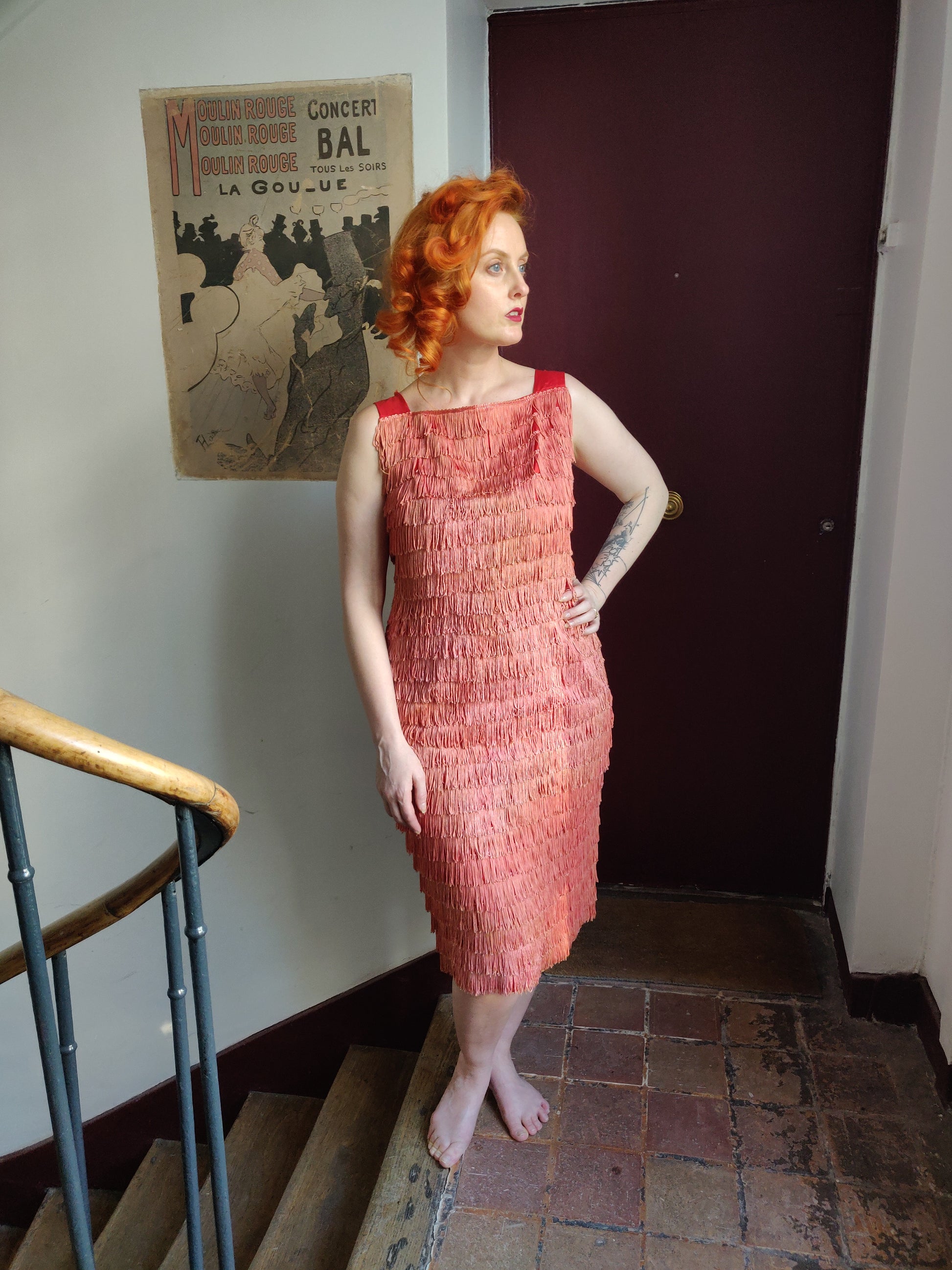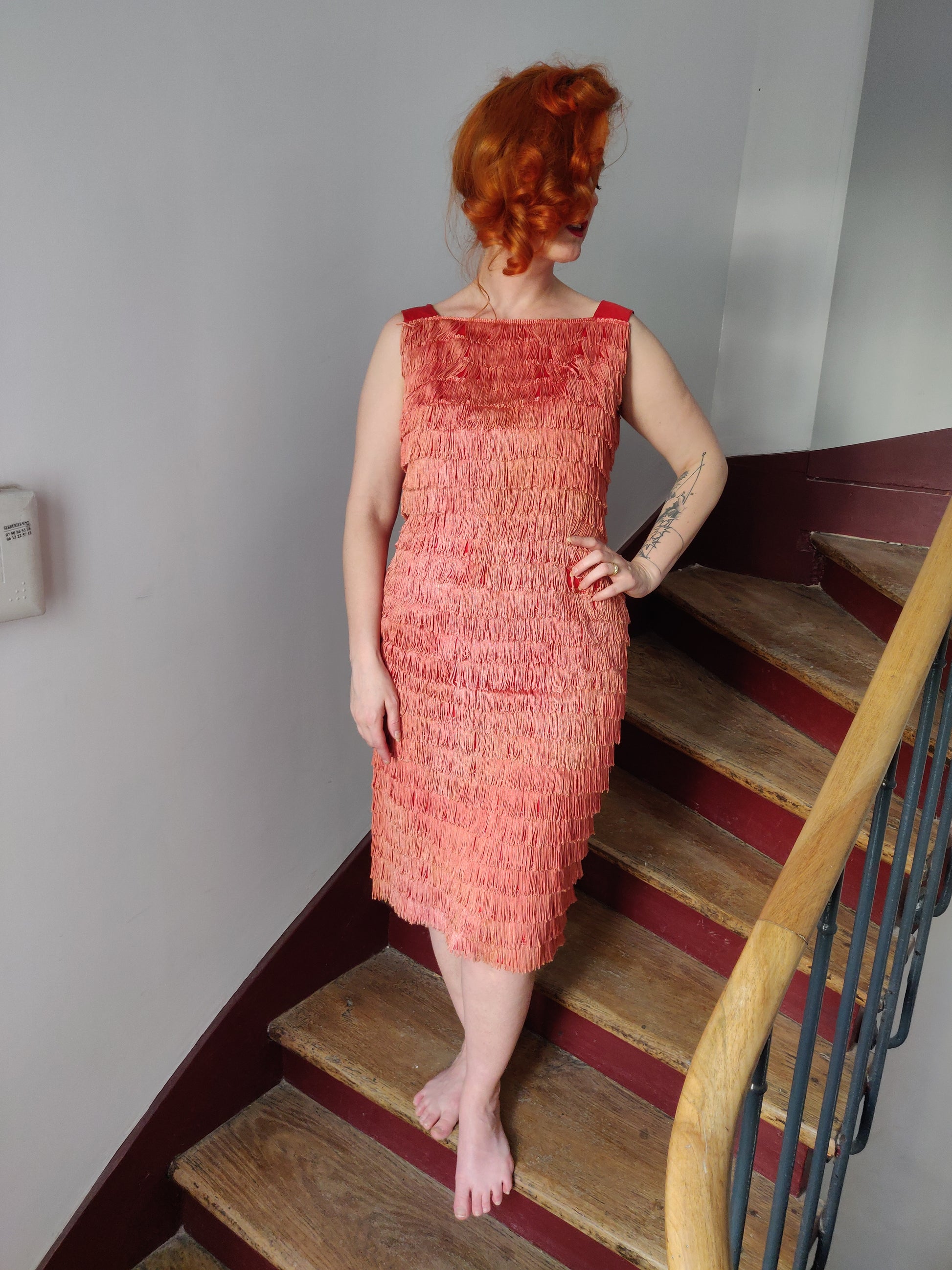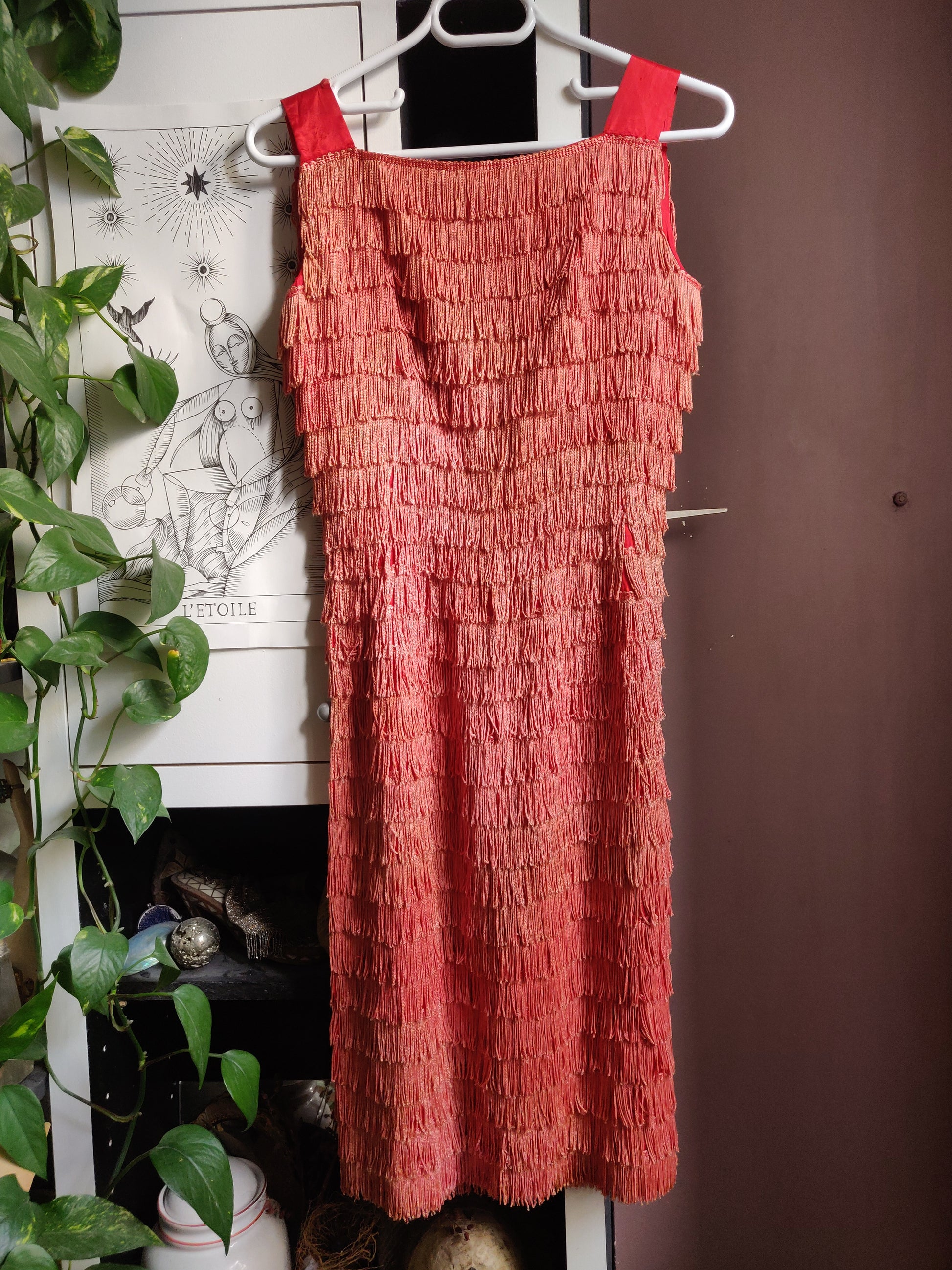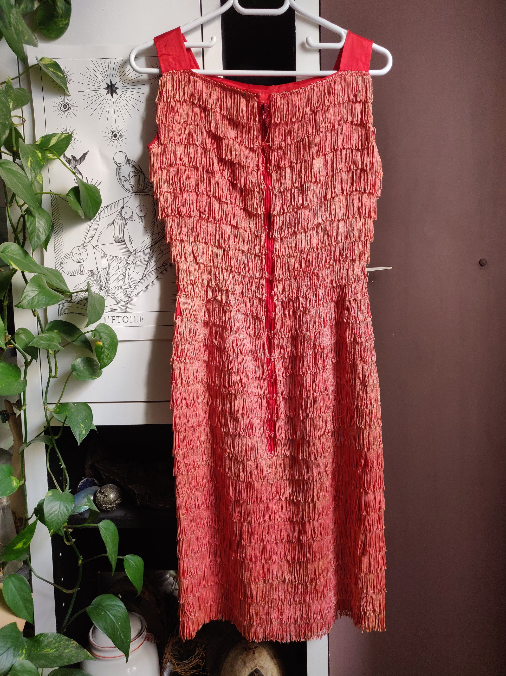 1950s/60s Fiery Coral Fringe Dress
