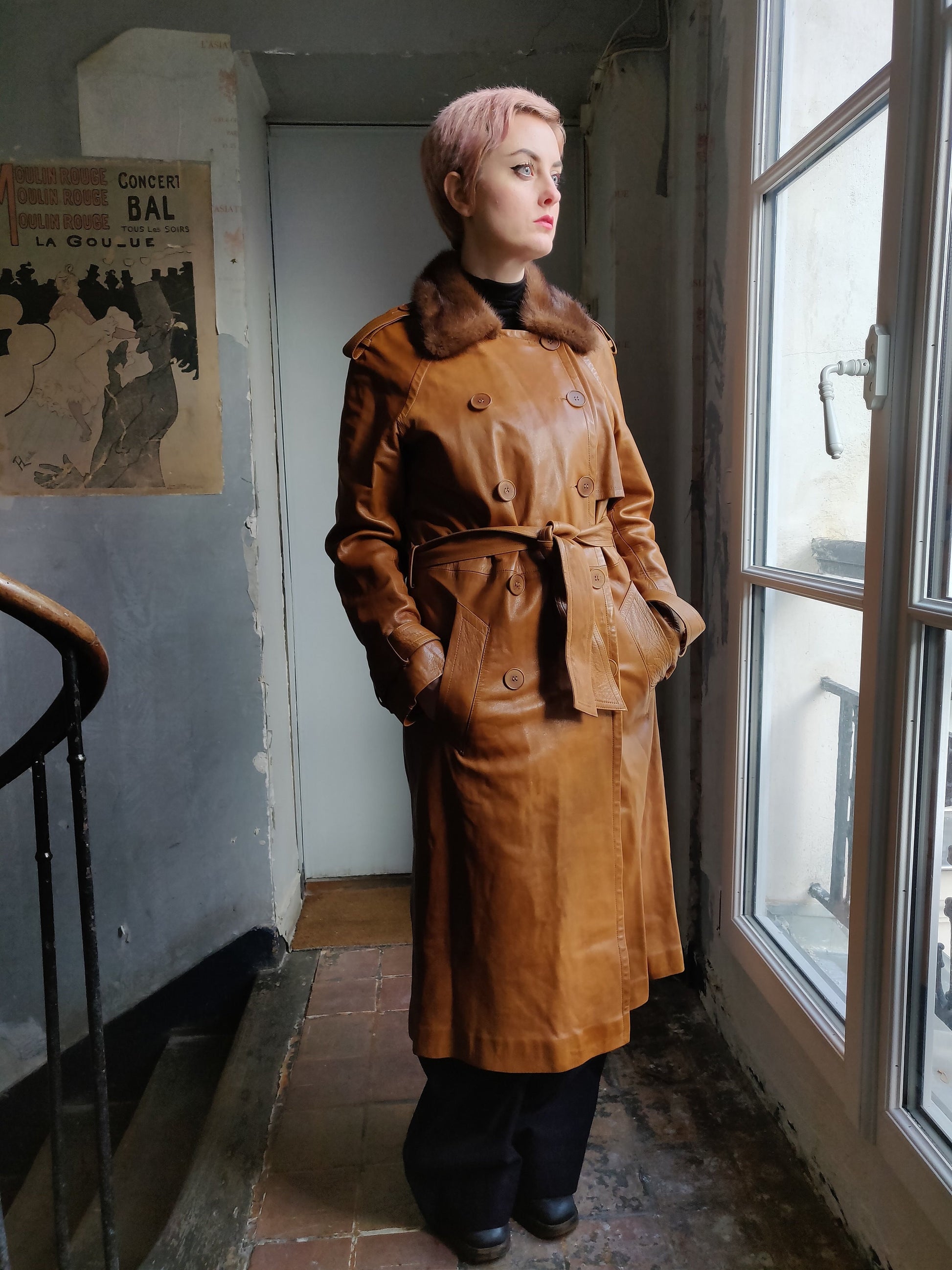 Plein Sud by Fayçal Amor - Soft Caramel Leather Trench Coat - Mink Collar - French Designer