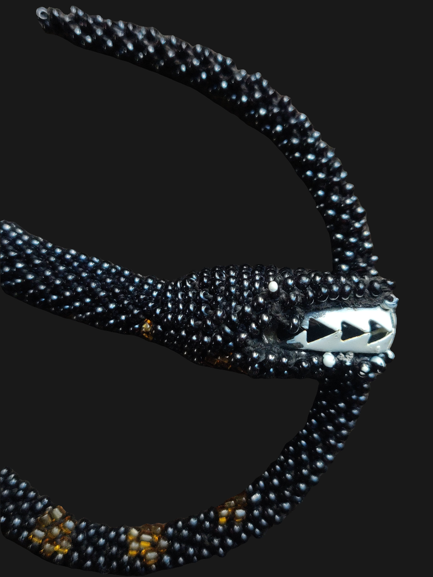 WWI/1920s Bead Crochet Snake With Clamp Teeth